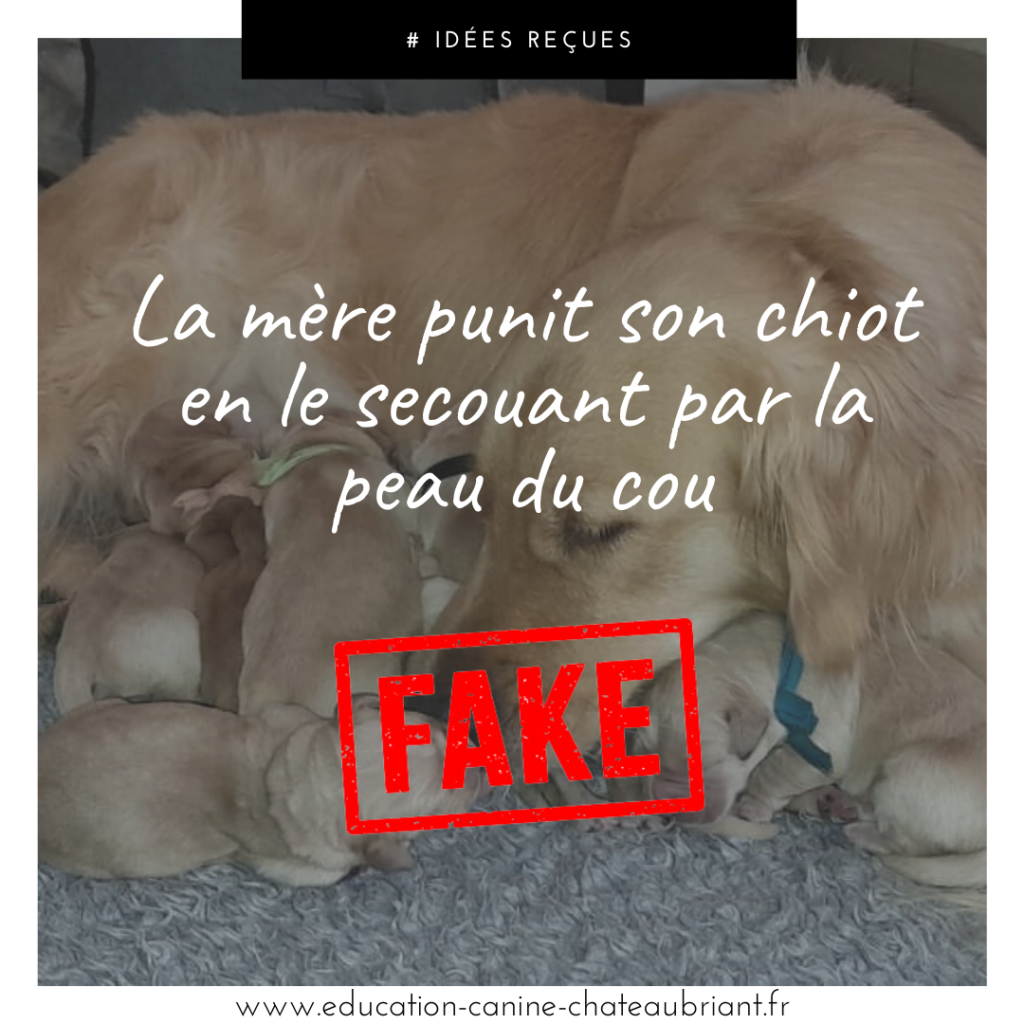 On entend encore trop souvent, “𝐧’𝐡𝐞́𝐬𝐢𝐭𝐞𝐳 𝐩𝐚𝐬, 𝐥𝐚 𝐦𝐞̀𝐫𝐞 𝐟𝐚𝐢𝐭 𝐜̧𝐚 𝐩𝐨𝐮𝐫 𝐜𝐚𝐥𝐦𝐞𝐫 𝐬𝐞𝐬 𝐜𝐡𝐢𝐨𝐭𝐬” 𝐦𝐚𝐢𝐬 𝐜𝐞𝐭𝐭𝐞 𝐚𝐟𝐟𝐢𝐫𝐦𝐚𝐭𝐢𝐨𝐧 𝐞𝐬𝐭 𝐭𝐨𝐭𝐚𝐥𝐞𝐦𝐞𝐧𝐭 𝐞𝐫𝐫𝐨𝐧𝐞́𝐞. Aucune mère ne prend le chiot par la peau du cou et le secoue pour le punir. Je peux vous garantir par expérience que la mère ne prend ses chiots par la peau du cou uniquement pour les déplacer dans un point A à un point B et jamais ne les secoue ainsi. Afin de gérer les interactions avec/entre ses chiots, elle leur enseigne les rudiments de la communication et langage canin à travers le jeu notamment, mais ne les brutalise pas !